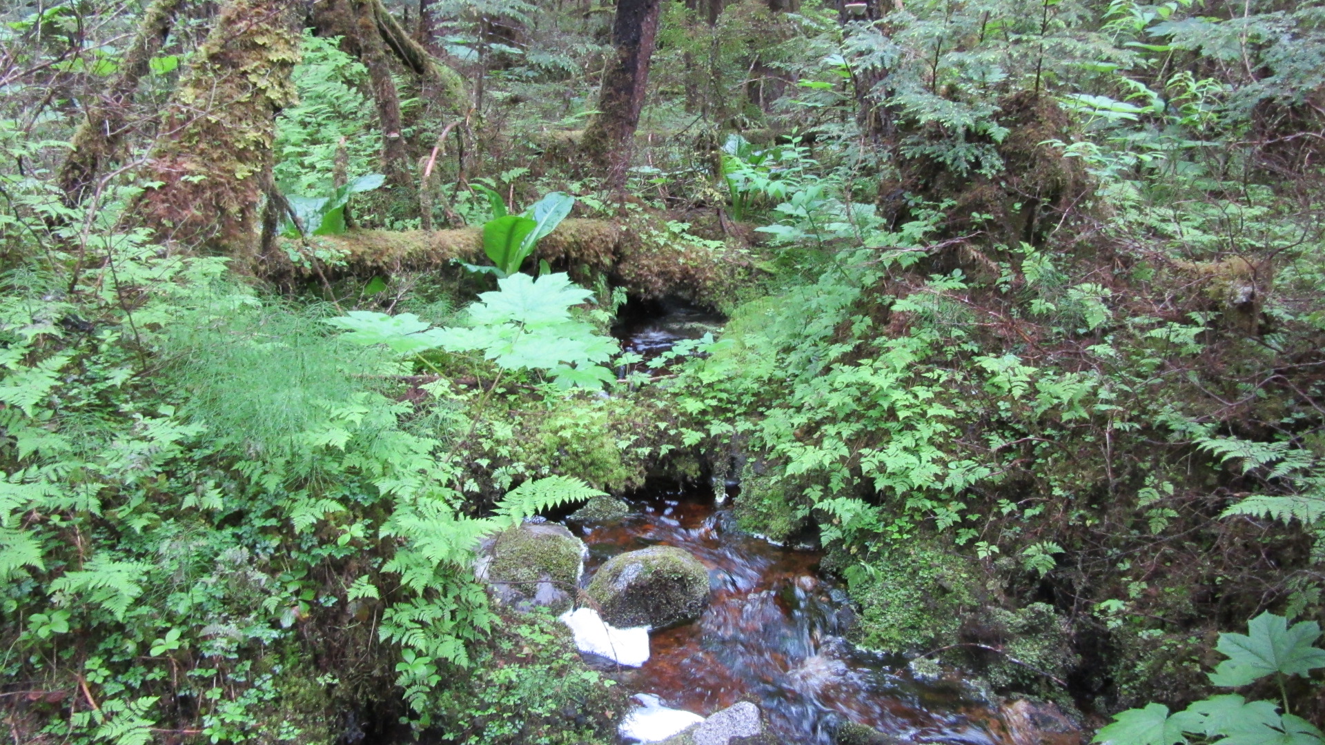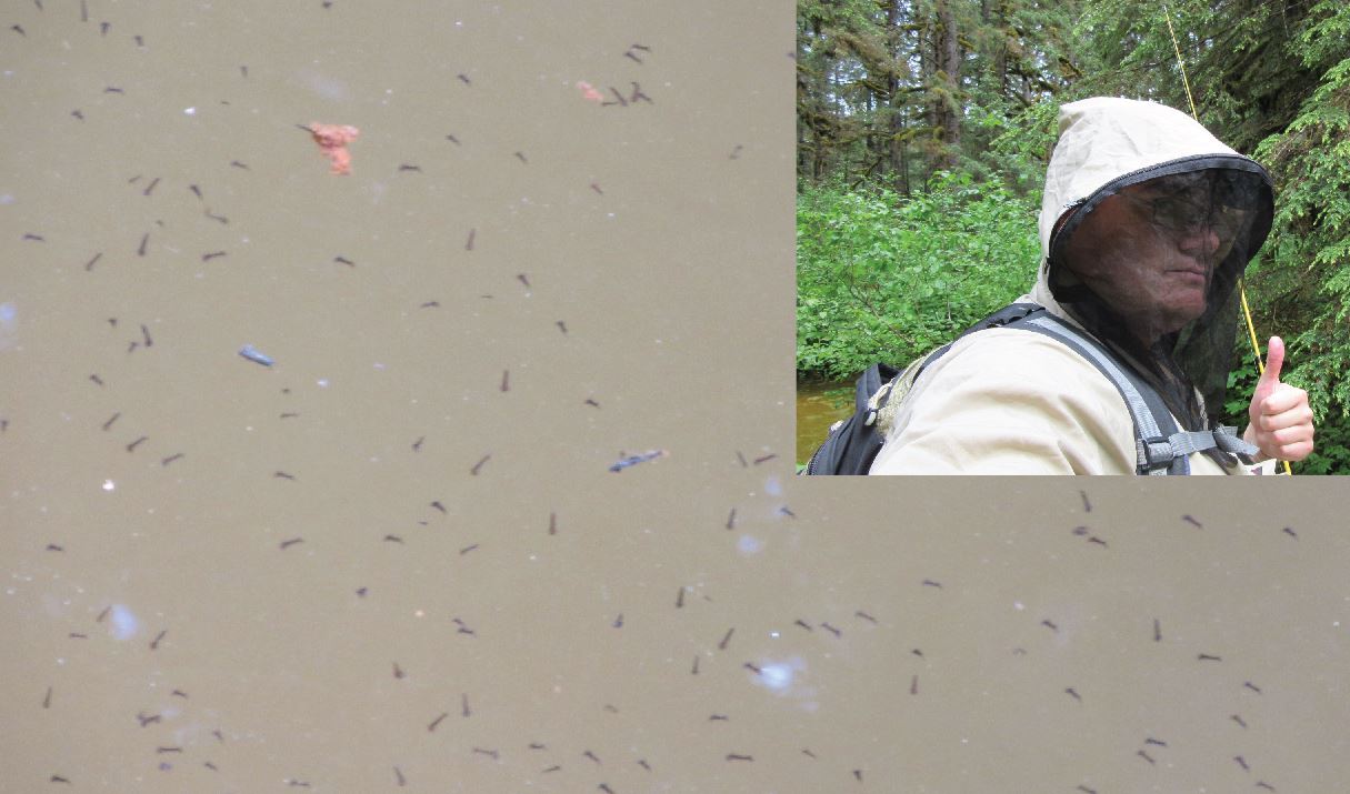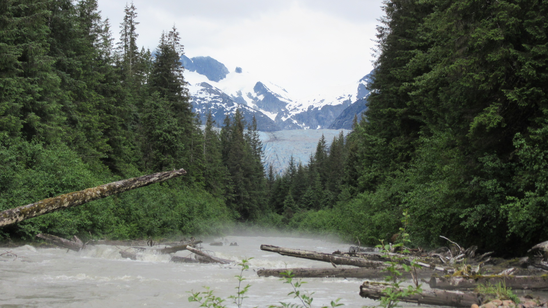 I am currently in the state capital of Juneau. We had a piece of equipment break down and are currently waiting on a replacement part, so I’ve got time for fishing, exploration and being a tourist. On Wednesday, the morning’s rain was breaking up midday and I was intrigued by something I read in the fishing regulations. There is a stream in the area that is only open to fishing on Wednesdays and Saturdays in the month of June. It’s a tributary to a river that flows out of a glacier and it’s about a three mile trek to get there. If nothing else, I figured it would be a cool hike.