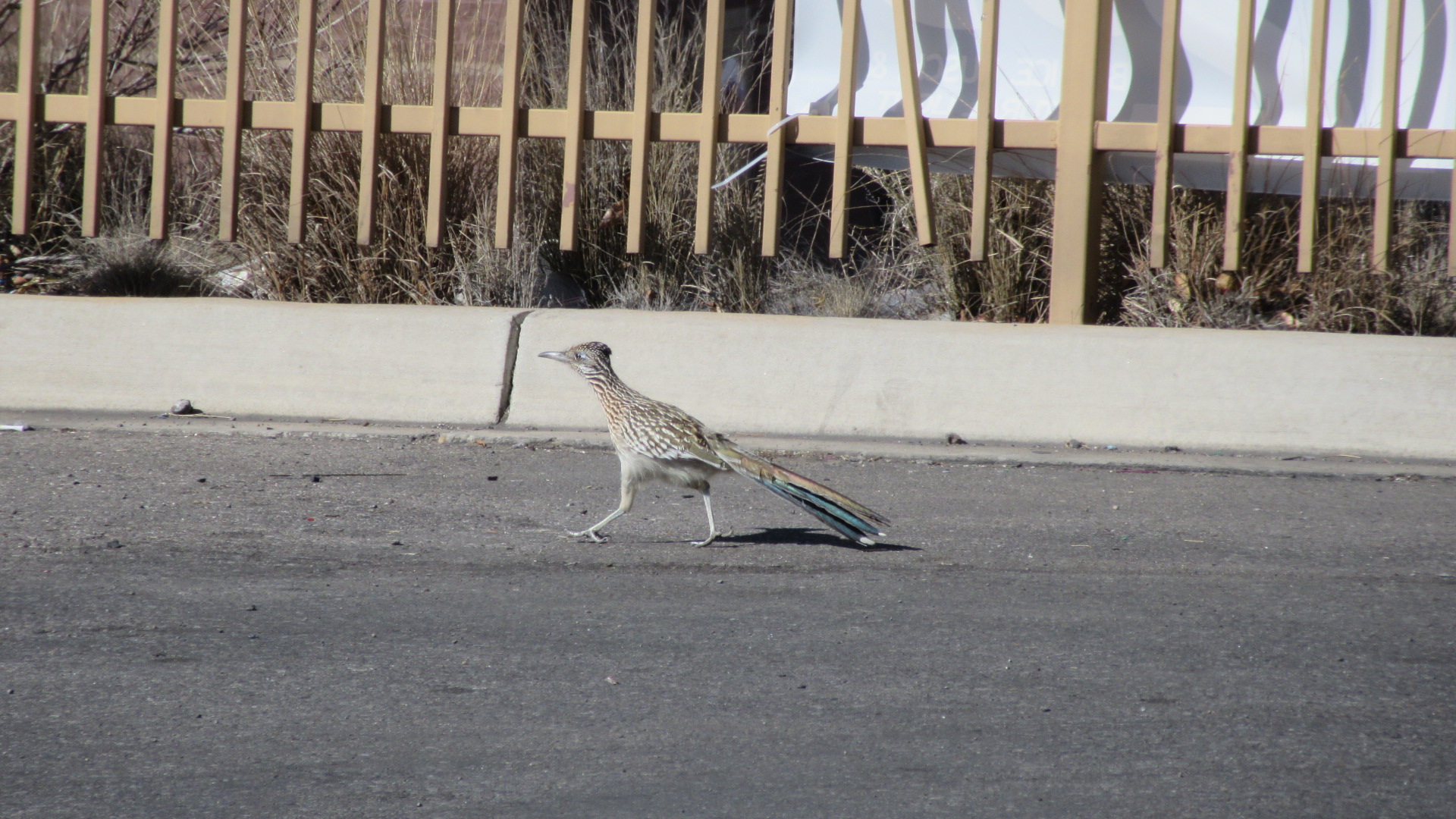 For now, have a look at the state bird of New Mexico running around a gas station in the middle of the state’s largest city just a couple miles from the central business district.