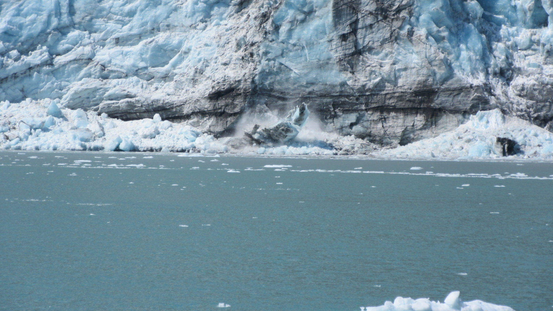 I felt the great thunder of ice plunging down a 200 foot frozen escarpment.